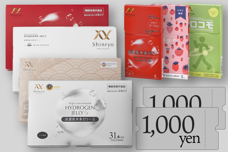 Shinryo Healthcareの『高濃度水素ゼリー』はゼリー1本の中に濃度30〜40ppm、水素水で言うと1リットル相当分*2の水素を溶かすのではなく「閉じ込める」ことで高い濃度を実現しています。